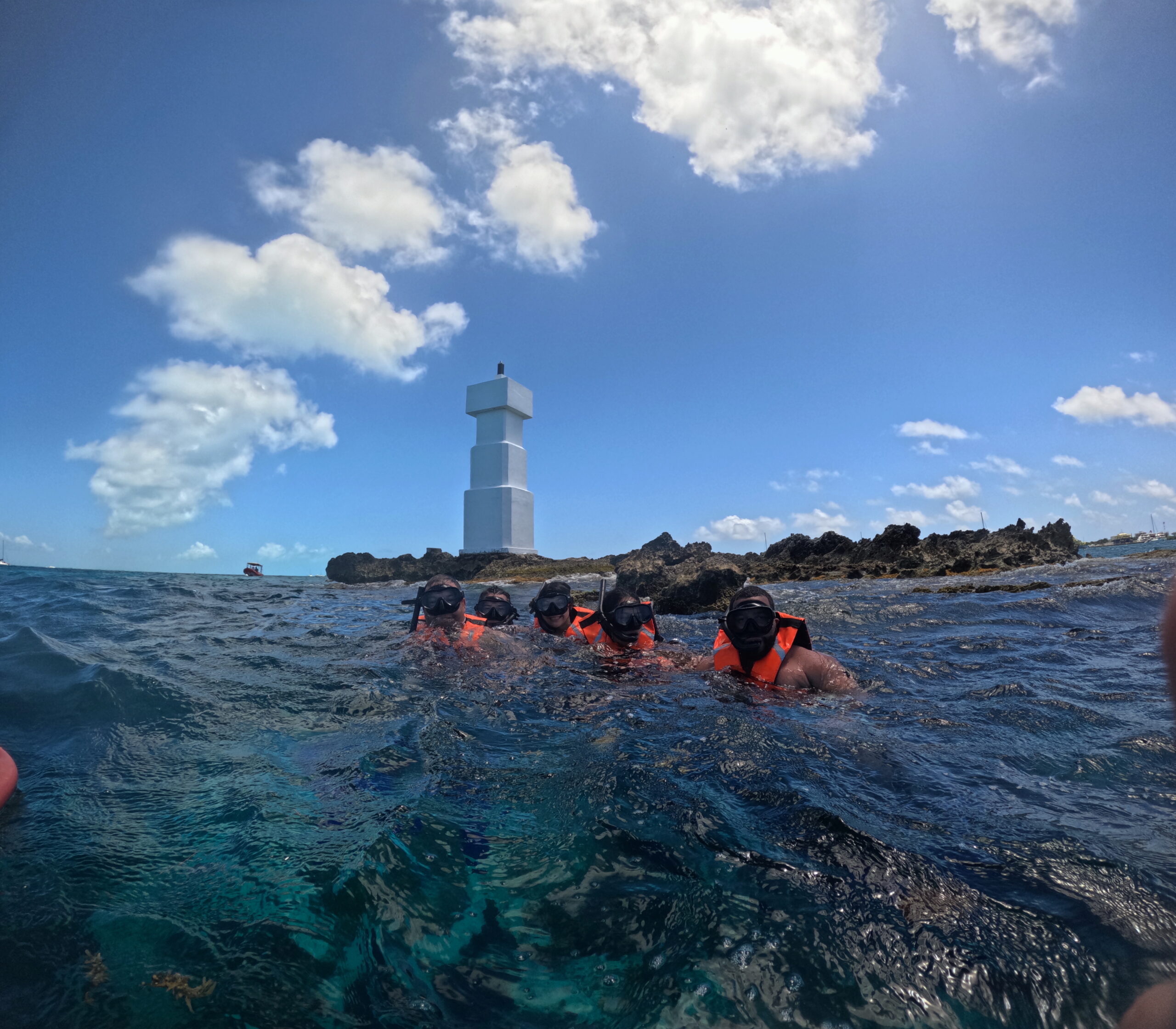 Dive into the crystal-clear Caribbean waters of Isla Mujeres with our small-group snorkeling tour, designed for families, couples, and ocean lovers. Visit three of the island’s most iconic snorkeling locations and discover vibrant marine life, colorful corals, and the unique Underwater Museum (MUSA) — all guided by expert local crew.